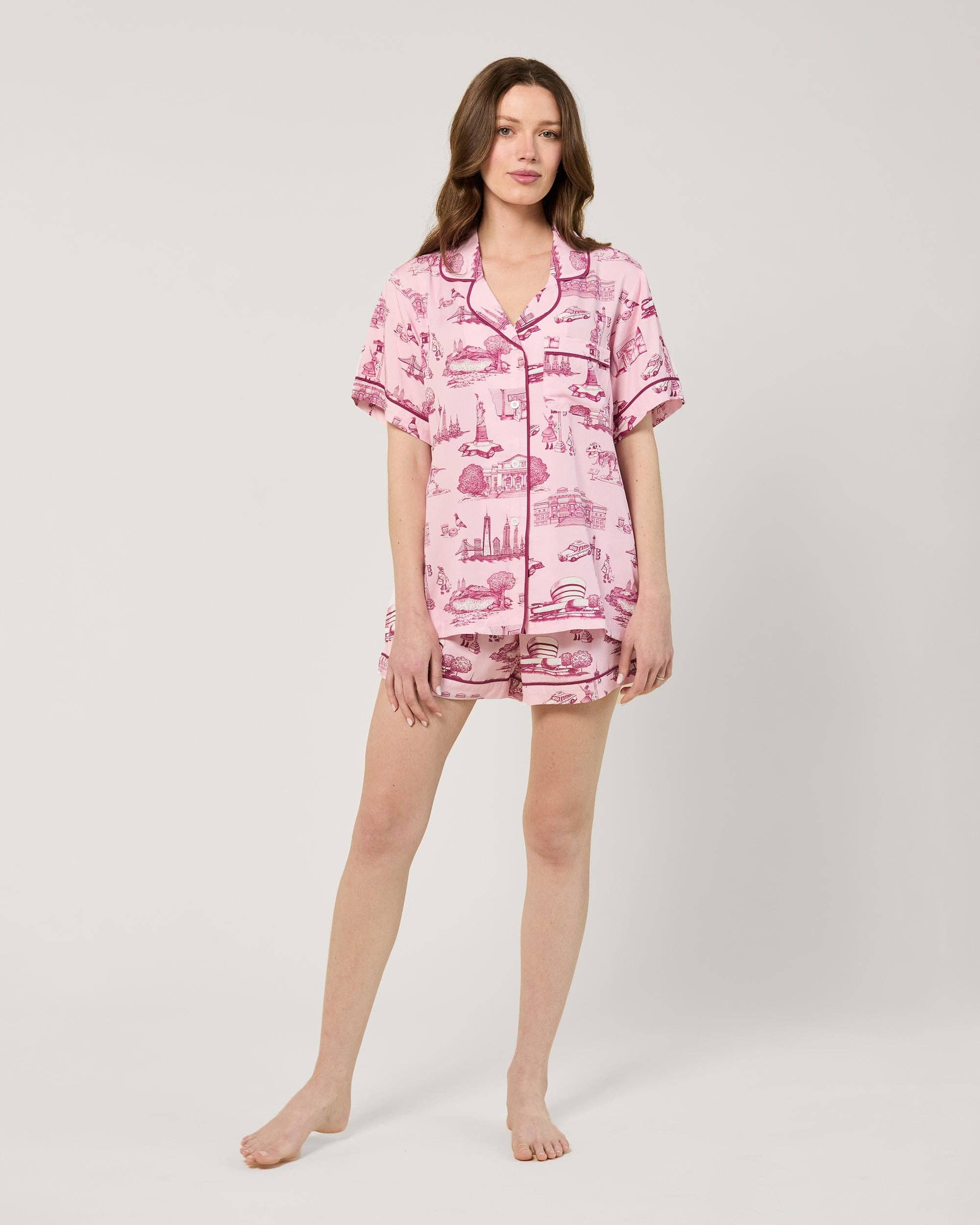 Un ensemble de pyjama ludique avec des imprimés de cœurs et des bordures en plumes sur les poignets et les ourlets, conçu pour une nuit amusante et confortable à la maison. Tissu : 100 % polyester Poids : 0,5 kg