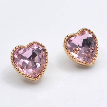 Boucles d'oreilles clous cœur pavé de cristaux en vente B2B