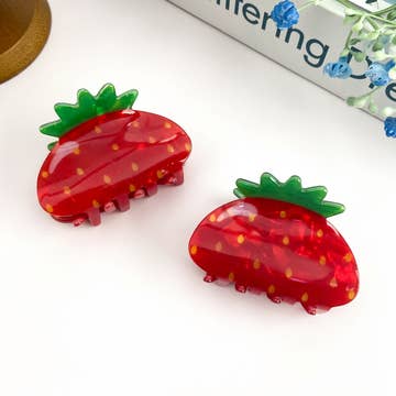 Ajoutez une petite touche de fantaisie à votre style avec notre pince à cheveux Jelly ! Cette beauté de 3" x 2" présente des détails peints à la main, de l'acétate transparent, une touche de crème fouettée et une fraise sur le dessus. Fabriquée en acétate de cellulose écologique, c'est l'accessoire ludique et amusant parfait pour un look doux et durable !