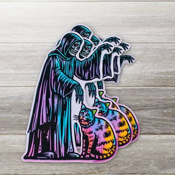 Autocollant en vinyle imperméable découpé à l'emporte-pièce représentant un chat avec un corbeau sur la tête