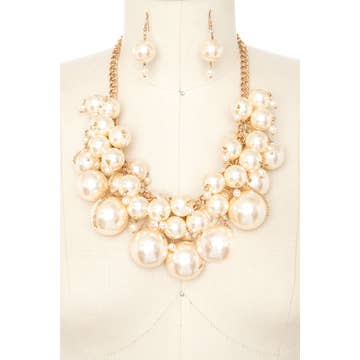 Collier de boucles d'oreilles Hamilton Gold avec triple perle verticale de 10 mm en vente B2B
