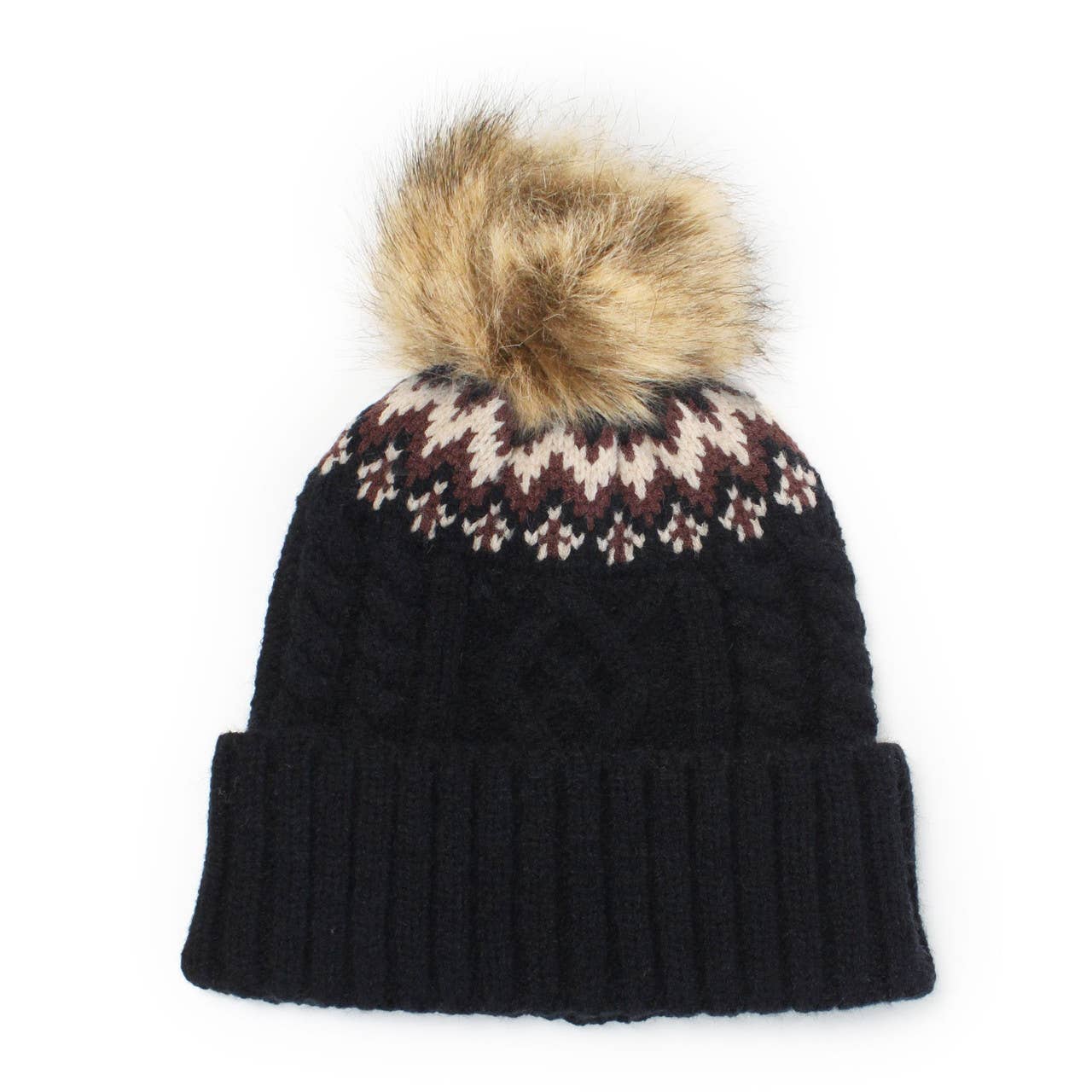 Bonnet 50 % cachemire 50 % laine mérinos avec pompon en fourrure amovible