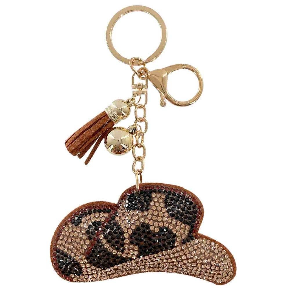 Porte-clés en perles de silicone léopard vache western Papillon avec strass, pompon Taille : 3,5" x 8"
