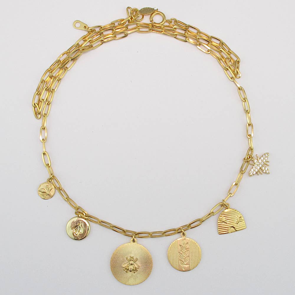 L'amour est dans l'air. Tous les charmes pour tomber amoureux de l'amour. Plaqué or 14 carats. Les charmes peuvent varier légèrement mais restent toujours dans le thème.