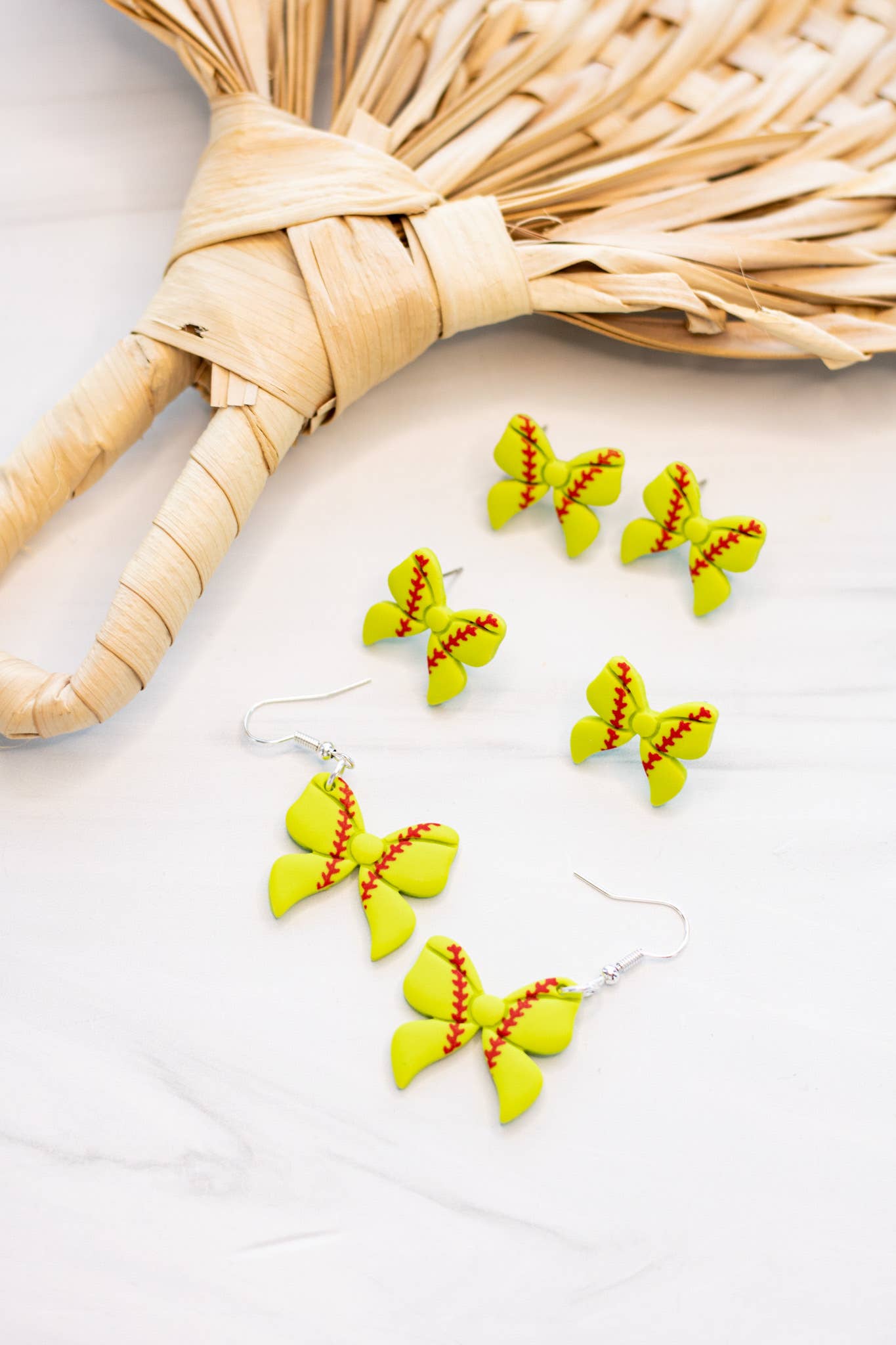 Boucles d'oreilles pendantes avec nœud coquette de softball en vente B2B