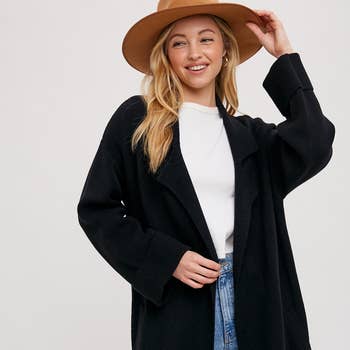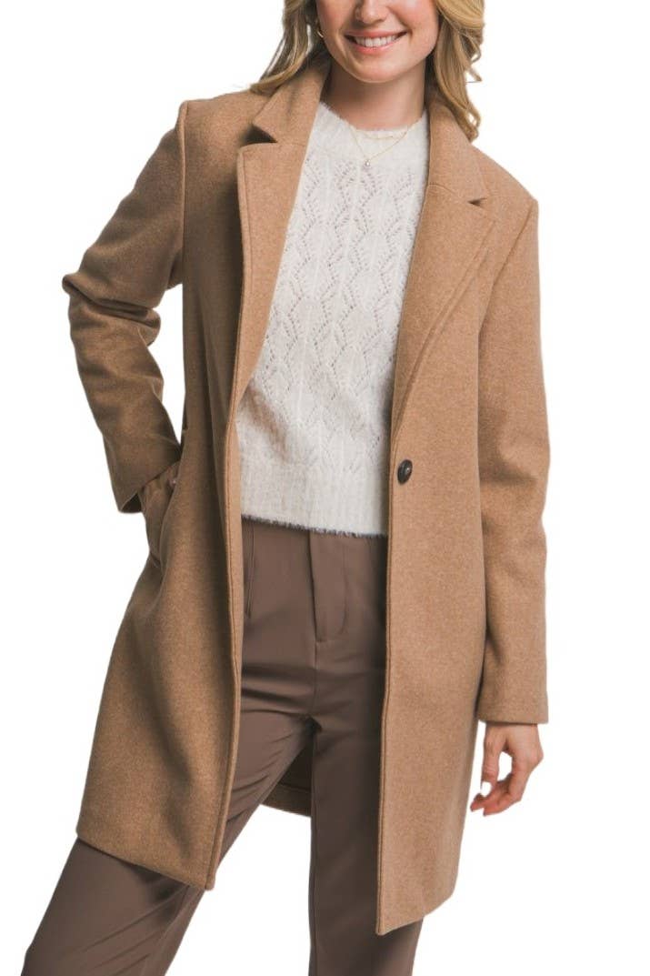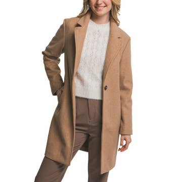 Manteau long à manches longues en feutre doux à double boutonnage.