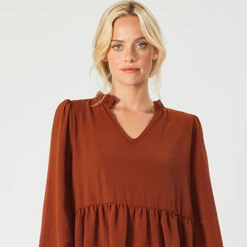 Haut à manches longues noué sur le devant avec fronces aux épaules et élastique aux poignets