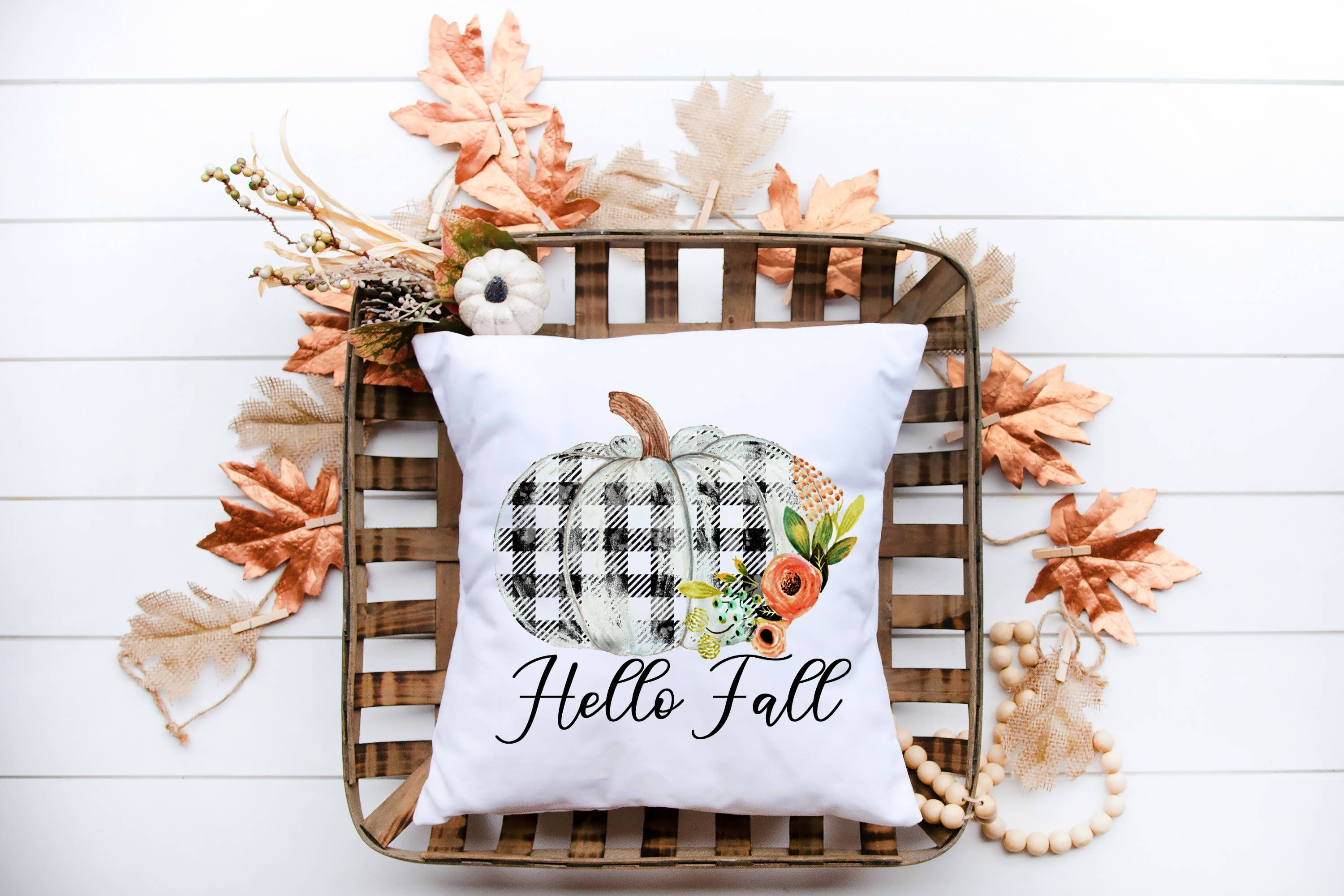 Housse de coussin beige clair avec motif citrouille florale neutre en vente B2B