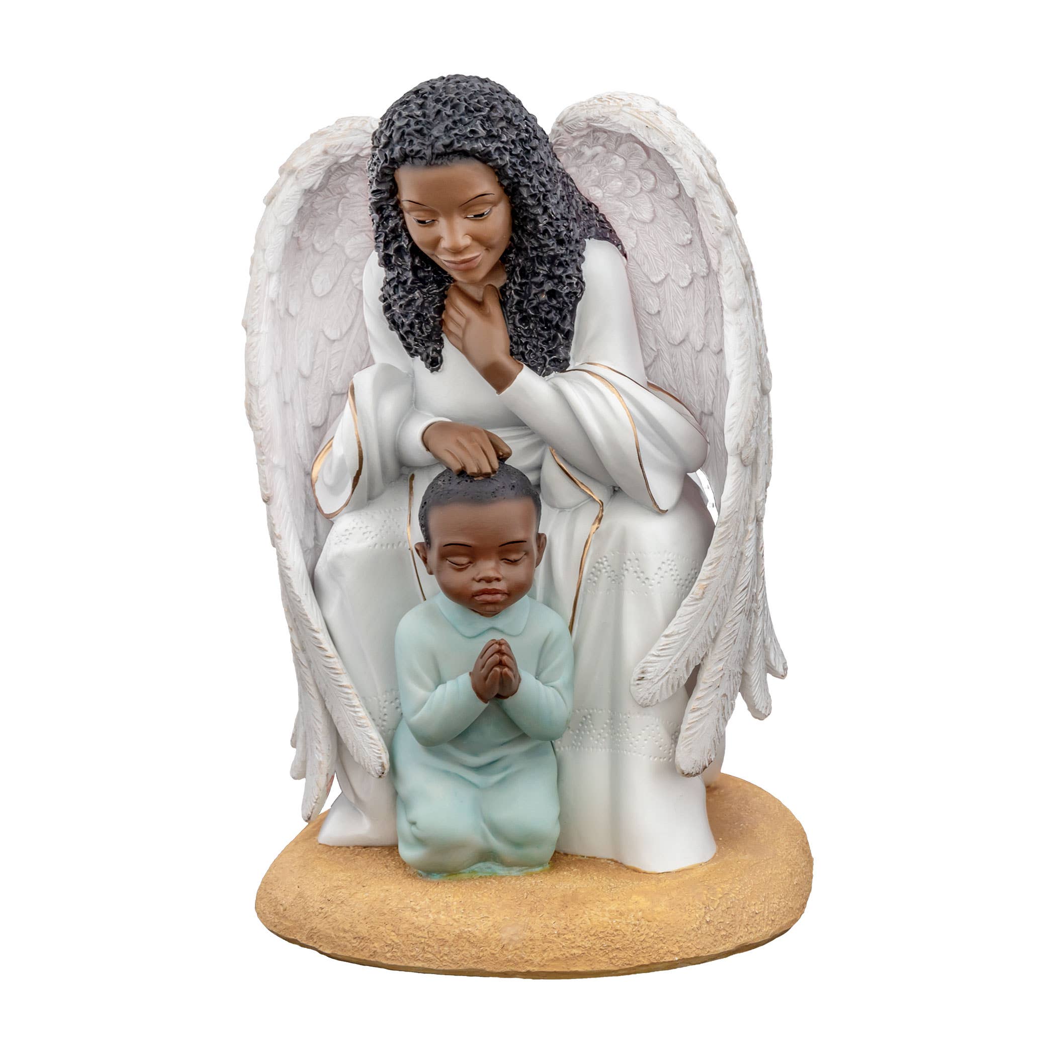 Figurine de collection magnifiquement conçue à la main représentant un ange gardien noir veillant sur votre être cher ! Détails élégamment sculptés. La figurine est dotée d'un cadre photo au format standard (insérez la photo par le côté). Fabriqué par Positive Image Gifts et faisant partie de la collection Ebony Treasures®. Matériau en polyrésine. Environ 18,4 cm de hauteur. Pour usage intérieur et à des fins décoratives uniquement. Ce n'est pas un jouet et n'est pas destiné aux enfants.