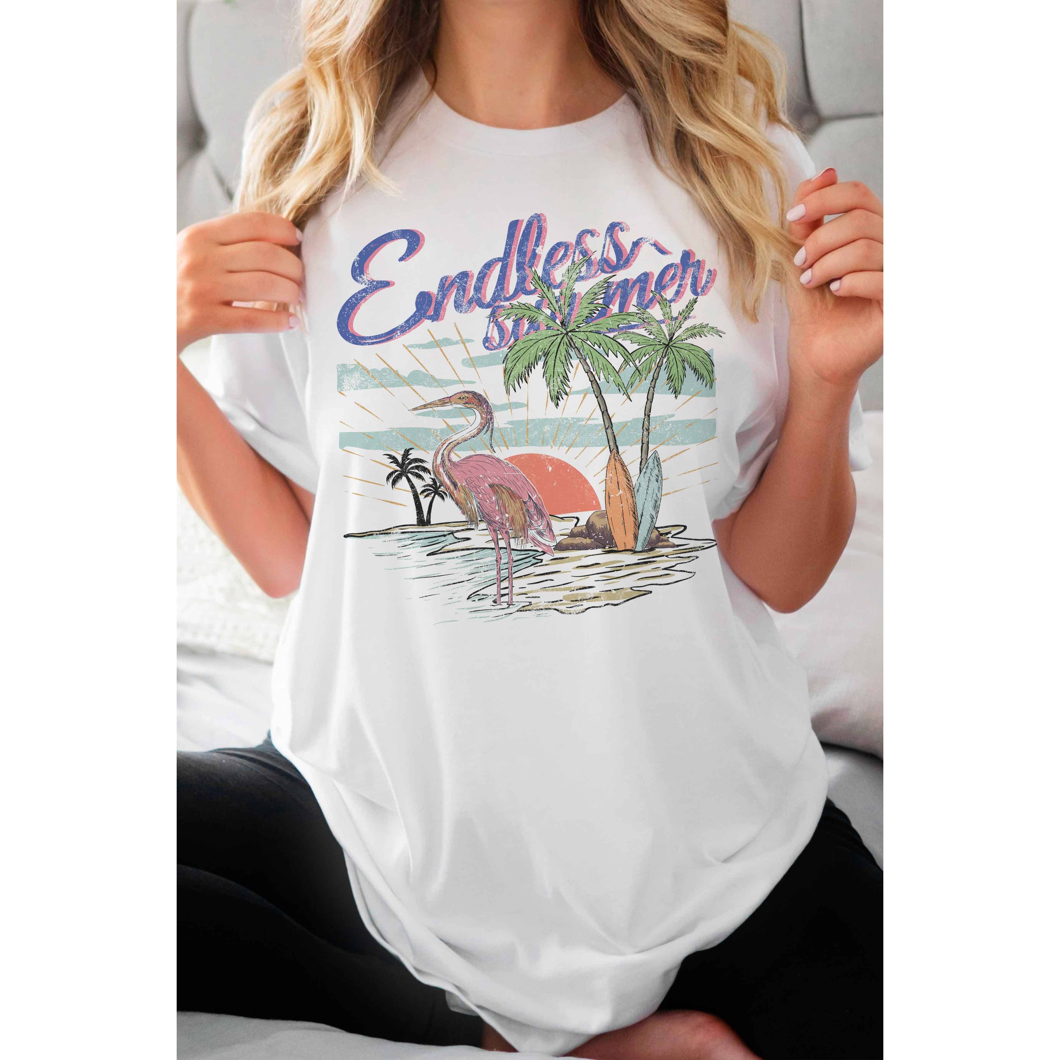 T-shirt d'été Flamant Rose Plage, T-shirt Rétro Vacances Tropicales en vente B2B