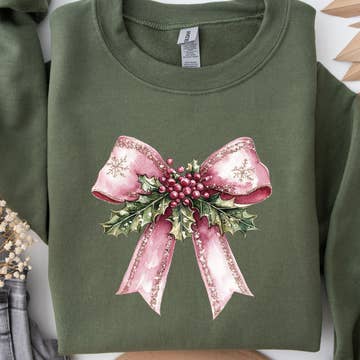 Pull de Noël à nœud à carreaux "Deck the Halls" - nœuds de fête à carreaux Les sweat-shirts sont fabriqués avec Gildan ou Jerzees. Mélanges 50/50 de polyester et coton. Nos t-shirts sont imprimés avec des impressions DTF de haute qualité. Nous imprimons en interne sur une imprimante DTF commerciale et les t-shirts sont pressés avec une presse à chaud commerciale.
