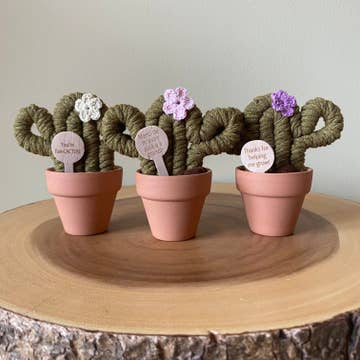 « Tu es fan-cactus » & Merci Cactus en macramé fait main en vente B2B