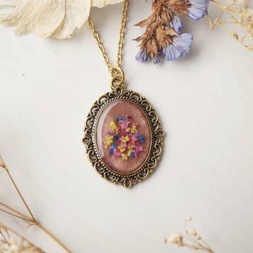Collier Pendentif Ovale Fleurs de Crocus de Printemps en vente B2B
