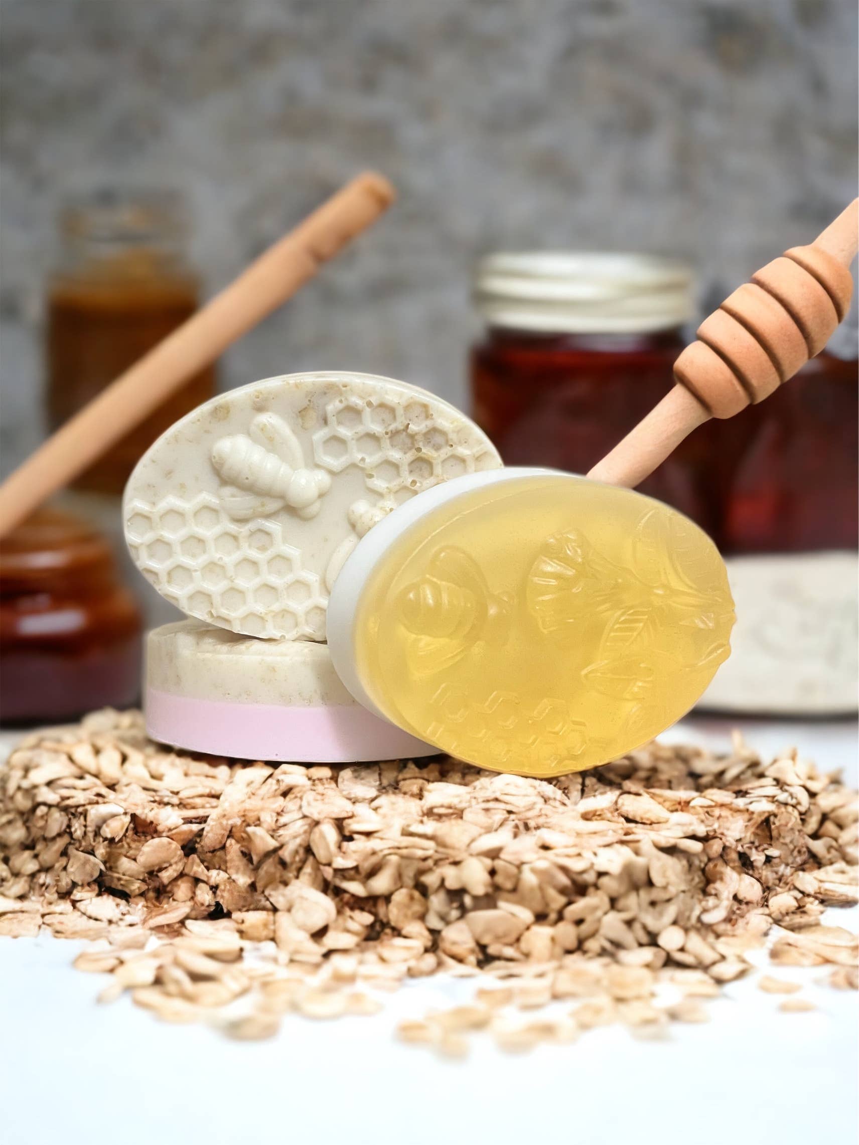 Base de savon au lait de chèvre trempée dans du vrai miel ! C'est certainement l'un des préférés de mes clients. Ce savon mousse très bien, il est soyeux et garde votre peau hydratée. Le lait de chèvre contient des acides gras qui aident à réparer la barrière cutanée et des probiotiques pour encourager la croissance de la flore cutanée normale. Le miel a des capacités antibactériennes et antiseptiques. Il est excellent pour garder la peau hydratée et améliorer son apparence. *ne vient pas avec des étiquettes sauf sur demande. Les étiquettes seront sur le côté sauf demande contraire sans coût supplémentaire.