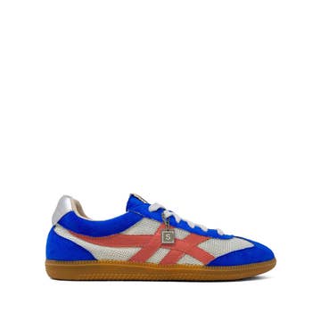 Baskets plates bleu et blanc à lacets avec zip doré