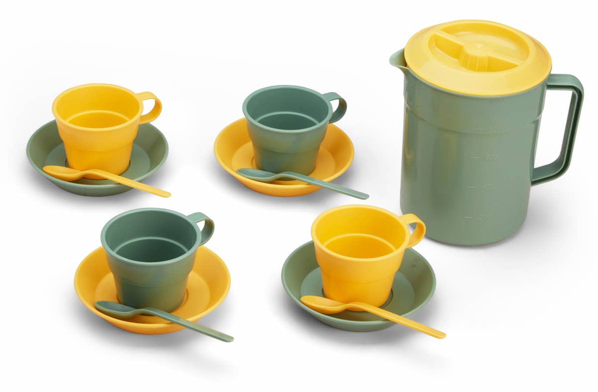 Le service de vaisselle à café « Relax » comprend 17 éléments et est livré dans un sac. C’est un cadeau idéal pour votre enfant, avec des couleurs tendance et apaisantes. La vaisselle pour enfant est de haute qualité et sûre. Ce set permet de partager un moment de café convivial pour quatre personnes, tout en offrant à votre petite hôtesse l'occasion d'apprendre les règles d'étiquette et du dressage de table de manière ludique. Les pièces passent au lave-vaisselle et peuvent être réchauffées au micro-ondes. Le set comprend : 1 bouilloire, 4 tasses, 4 soucoupes, 4 assiettes, 4 cuillères et un sac.