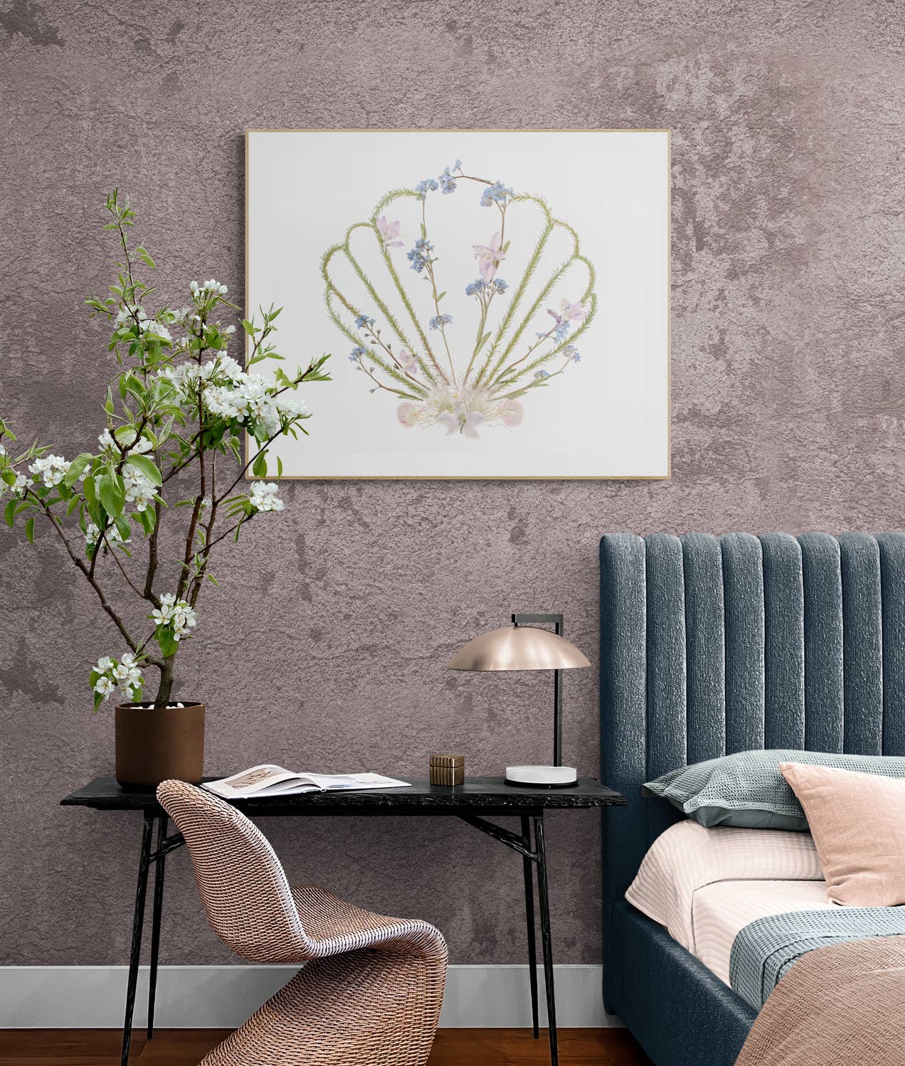 Art mural botanique pastel. Imprimé neutre gris et beige en vente B2B