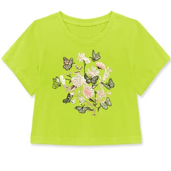 Tailles enfants : 1 - XS (4 ans), 1 - S (6-7 ans), 1 - M (8-9 ans), 1 - L (10-12 ans), 1 - XL (13-14 ans). T-shirt en jersey de coton à manches courtes, coupe courte à la taille couleur crème. Logo graphique multicolore imprimé sur la poitrine avec un message positif. Encolure ronde et ourlet brut. - 100 % coton, léger - Coupe ajustée - Destiné aux filles et préadolescentes - Lavage en machine à froid - Importé