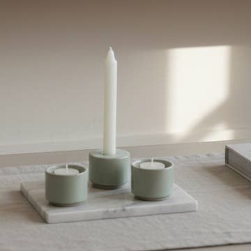 Notre bougeoir est une véritable œuvre d'art qui allie parfaitement fonctionnalité et esthétique. Le bougeoir se compose de trois pièces individuelles pouvant être agencées ensemble en un seul ensemble ou séparées en trois petits bougeoirs, vous permettant ainsi de personnaliser la décoration selon votre style. Dimensions : 7 x 16 cm Matériau : grès émaillé Ce design modulaire apporte une touche unique et contemporaine à votre table et à votre décoration intérieure. Conçu par Pedro Meneses, chaque pièce est fabriquée à la main au Portugal avec précision et soin à partir de grès de haute qualité, un matériau durable et élégant. Choisissez votre couleur préférée. Chaque produit est fait à la main et peut présenter de légères variations (couleur, taille, etc.), rendant chaque article unique.