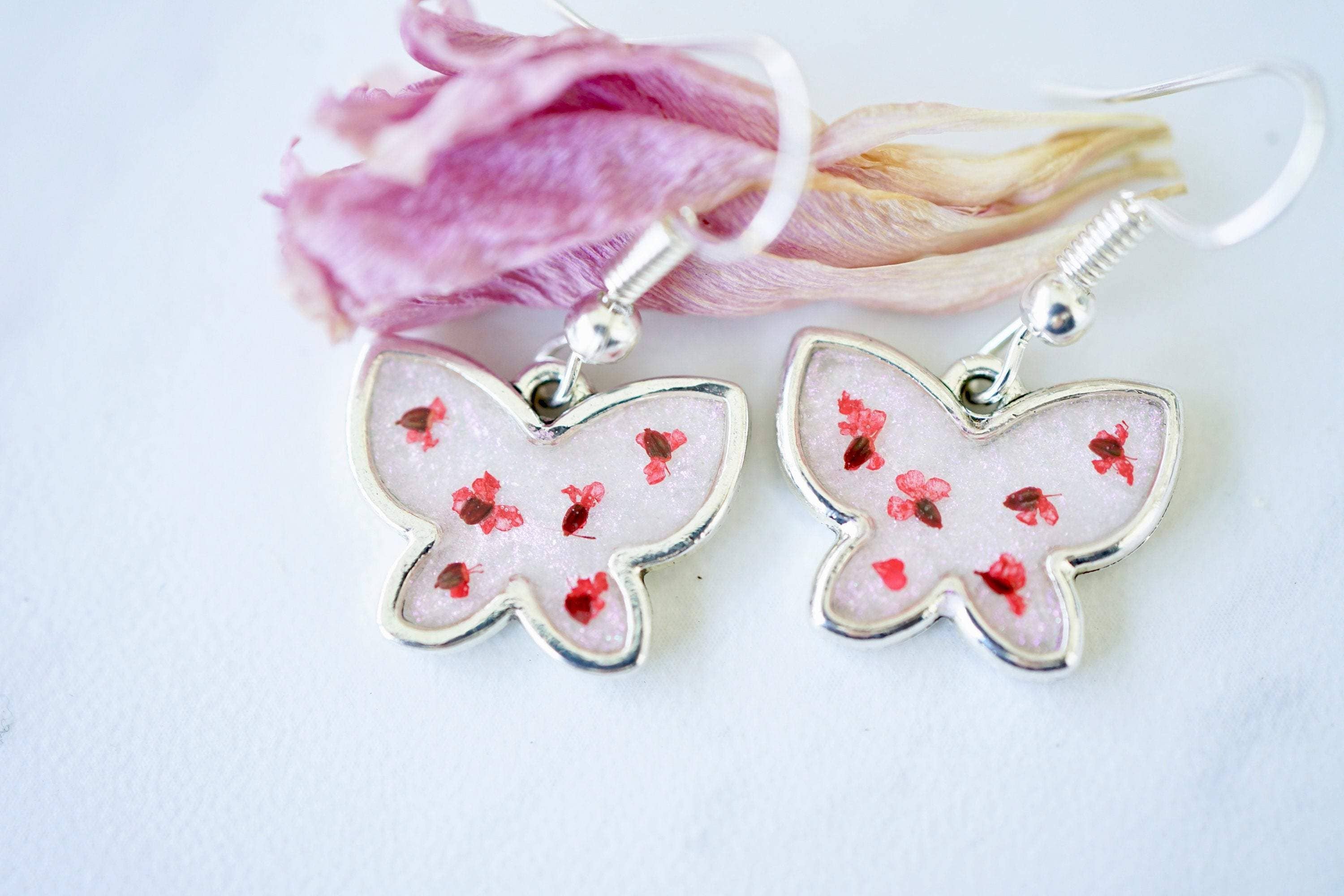 Boucles d'oreilles papillon bouquet en fleurs séchées
