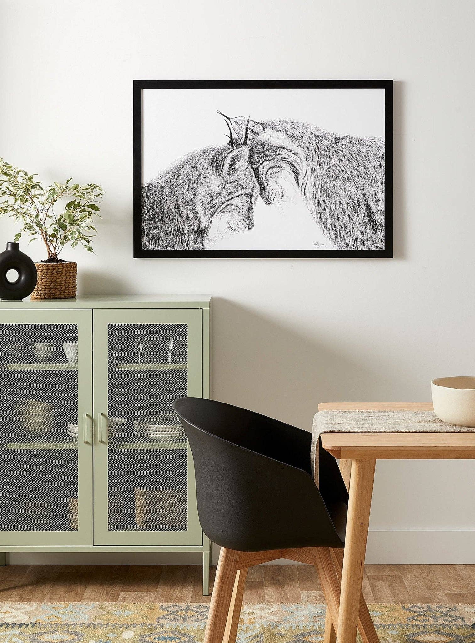 Tableau cabinet de 60 x 60 cm avec cadre en bois noir, adapté pour accueillir des peintures en relief. Sculpture composée d'un morceau de bois texturé et d'un dessin schématique de deux mains. Fond textile. Dimensions totales : 60 cm de hauteur, 60 cm de largeur, 5 cm de profondeur. Nous recommandons de le nettoyer avec un chiffon humide en évitant l'utilisation de produits chimiques.