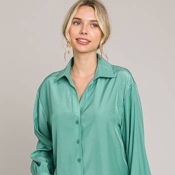 CHEMISIER À COL BOUTONNÉ GREC GRANDE TAILLE. 96% POLYESTER, 4% ÉLASTHANNE.