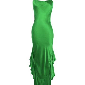 Robe maxi verte échancrée à franges et col halter en vente B2B