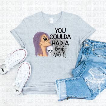 T-shirt en coton doux Nous sommes les filles des sorcières que vous ne pouviez pas brûler Jersey léger 60 % coton peigné à anneaux et 40 % polyester, 4 oz Col montant en tricot côtelé 1x1 cousu sur le devant Tissu blanchi pour réduire le rétrécissement Etiquette détachable Sérigraphié à la main avec de l'encre écologique.