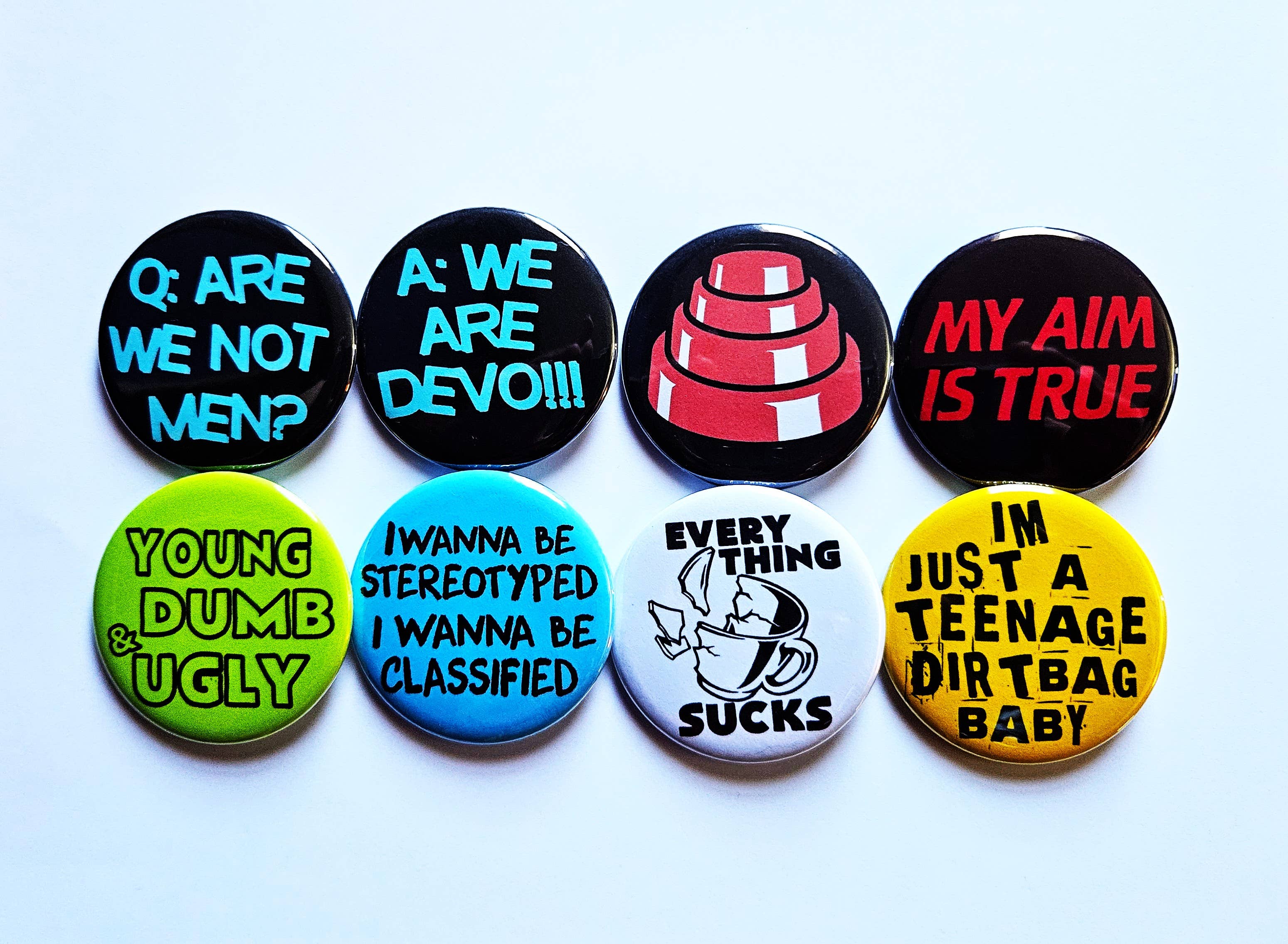 TAILLES DES PRODUITS Les épingles et aimants sont disponibles en, Petit 1,25" et Grand 2,25". Les décapsuleurs sont uniquement en 2,25". Les décapsuleurs incluent un porte-clés en option. Suivez-nous et identifiez-nous sur Instagram à Fliptherecord77
