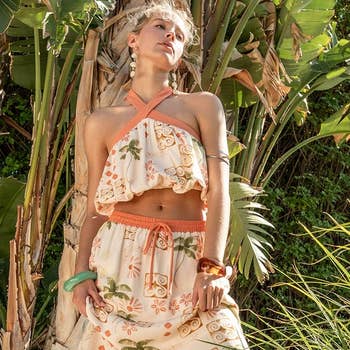 Ensemble deux pièces haut et jupe à fleurs avec doublure et poches en vente B2B