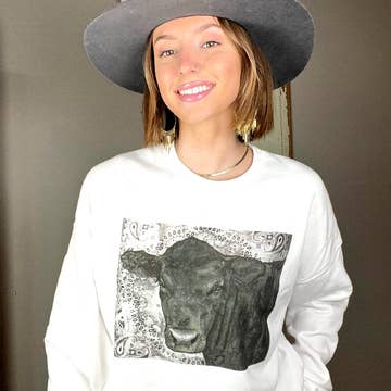 Adoptez l'esthétique avec le sweat-shirt Bleached Steer Head de Buckin Barn Wholesale. Ce sweat-shirt noir est un complément parfait à votre garde-robe automne/hiver, conçu avec une coupe parfaite pour tout le monde. Fabriquées par une entreprise familiale du Nouveau-Mexique, nous sommes fiers de nos racines dans l'agriculture et l'élevage, et nous apportons cet amour à chacune de nos créations.