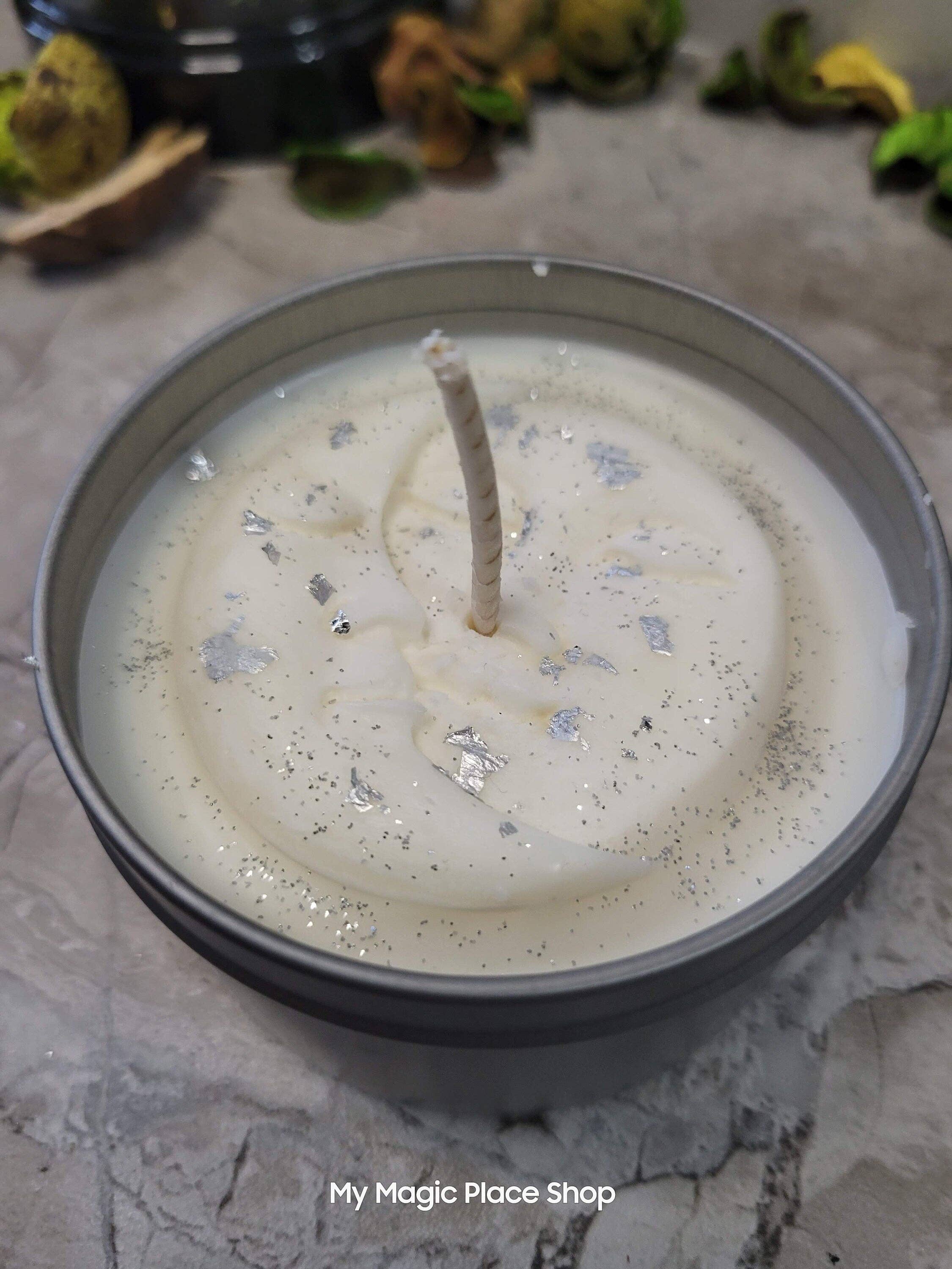 Chacune de nos belles bougies artisanales est une bonne bougie à usage général pour des questions spirituelles. Cela inclut des actes tels que la méditation et la recherche de l'illumination spirituelle ou de l'évolution. Ils sont garnis de petits cristaux, de copeaux, d'herbes et d'huiles essentielles qui renforcent cette intention. Allumez la bougie pour activer l'objectif. Nous utilisons les meilleures huiles parfumées du marché. Nous ajoutons la quantité maximale d'huile parfumée que la cire peut contenir pour obtenir une bougie très parfumée. Tous nos parfums sont exempts de phtalates. Ne laissez jamais la bougie sans surveillance et manipulez toujours le feu avec précaution. Toutes nos bougies sont conçues à des fins de méditation et ne doivent pas être brûlées plus de 15 à 30 minutes à tout moment. N'oubliez pas que nous utilisons des plantes sèches dans nos produits et qu'elles peuvent prendre feu. Si la flamme devient trop grande, veuillez les éteindre immédiatement. Vous pouvez également retirer les grosses pierres ou les fleurs après avoir allumé la bougie lorsque la cire est légèrement fondue.