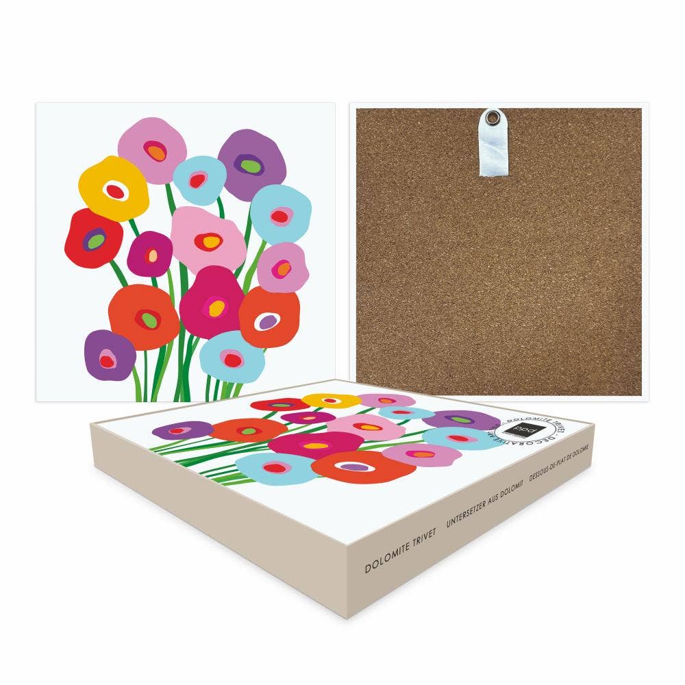 Dessous de plat en céramique décoratif résistant à la chaleur. Les dessous de plat protègent efficacement vos surfaces et plans de travail des dommages causés par la chaleur, des rayures et des taches. Chaque dessous de plat mesure 20 cm de côté, permettant de placer des casseroles et poêles de différentes tailles. Protégez vos magnifiques plans de travail et tables des dommages avec ces dessous de plat décoratifs. Le design artistique permet au dessous de plat de rester exposé même lorsqu'il n'est pas utilisé. Constitue un merveilleux cadeau de pendaison de crémaillère, d'anniversaire ou de fête des mères. Livré dans une boîte en acétate transparent avec une carte d'en-tête.