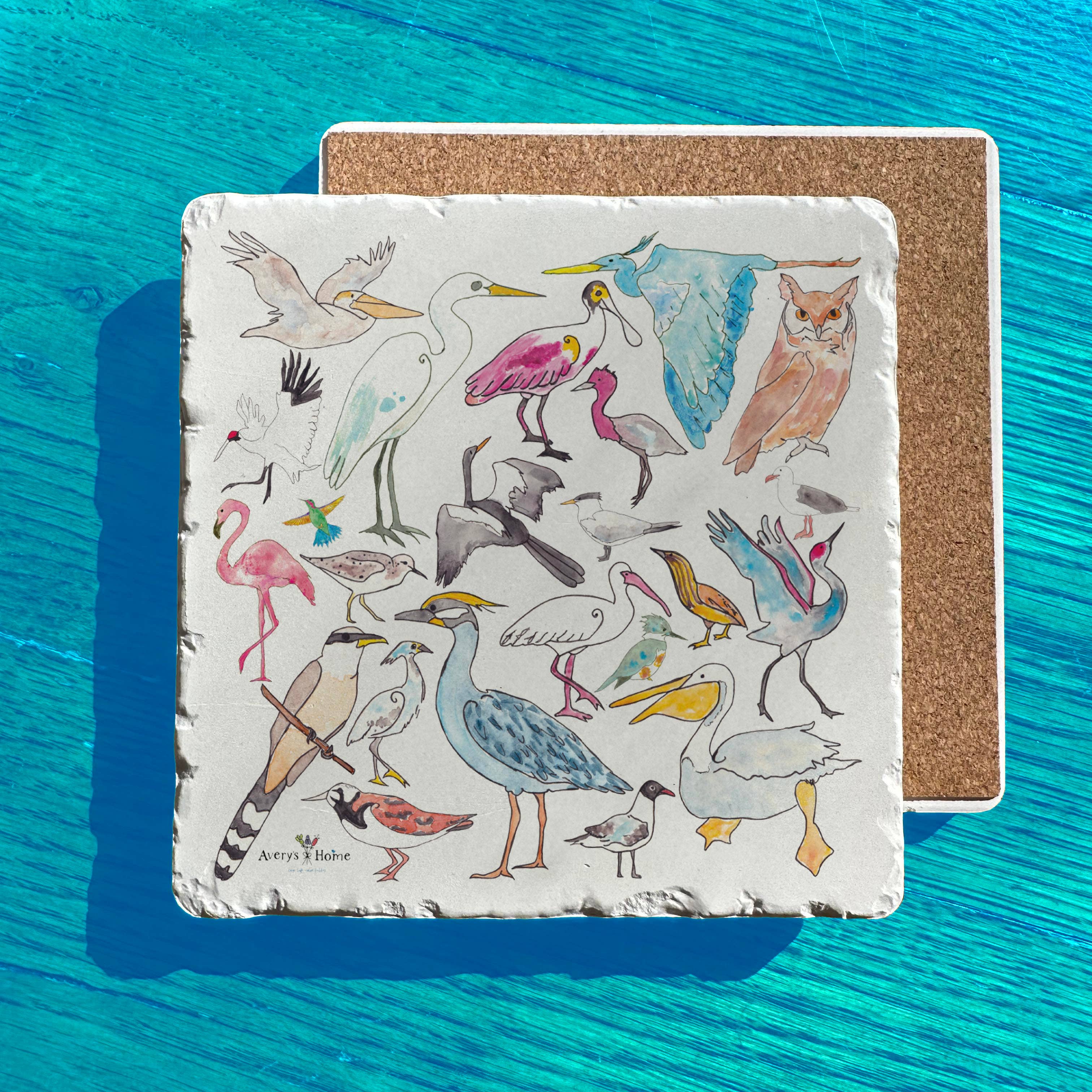 Dessous de plat en céramique "Étude d'oiseau" carré de 8 pouces en vente B2B