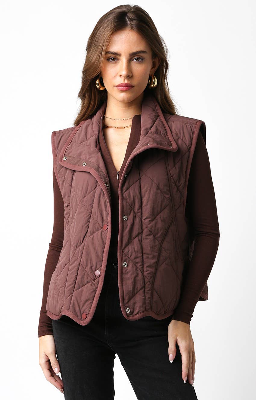 Notre doudoune sans manches est dotée d'une fermeture éclair à l'avant et de poches tissées.