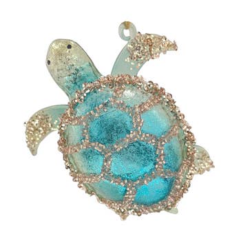 Apportez une touche d'océan à votre décoration de Noël avec cette décoration de tortue de mer en verre. Cette magnifique décoration représente une tortue de mer en verre détaillée, parfaite pour ajouter un charme côtier à votre sapin de Noël. C'est une pièce idéale pour les amoureux de l'océan et elle ajoute une touche unique à vos décorations festives.