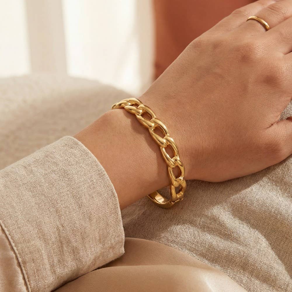 Bracelet manchette 24 carats plaqué or martelé | WA-2655 en vente B2B