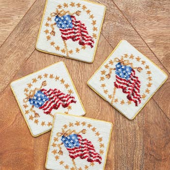 Set de sous-verres du Parti républicain. Sous-verres en marbre moulé fabriqués à la main par Studio Vertu. Chaque ensemble/4 sous-verres est fabriqué à la main par nos artisans qualifiés aux États-Unis. Parce que nous utilisons de la pierre naturelle, des variations sont à prévoir et mettent en valeur la beauté unique de chaque carreau ! Pour le nettoyer, utilisez un chiffon humide et essuyez. N'utilisez pas de produits chimiques agressifs ou d'abrasifs. Dimensions : Marbre Botticino dégringolé 4x4. Dos bouché 3 livres