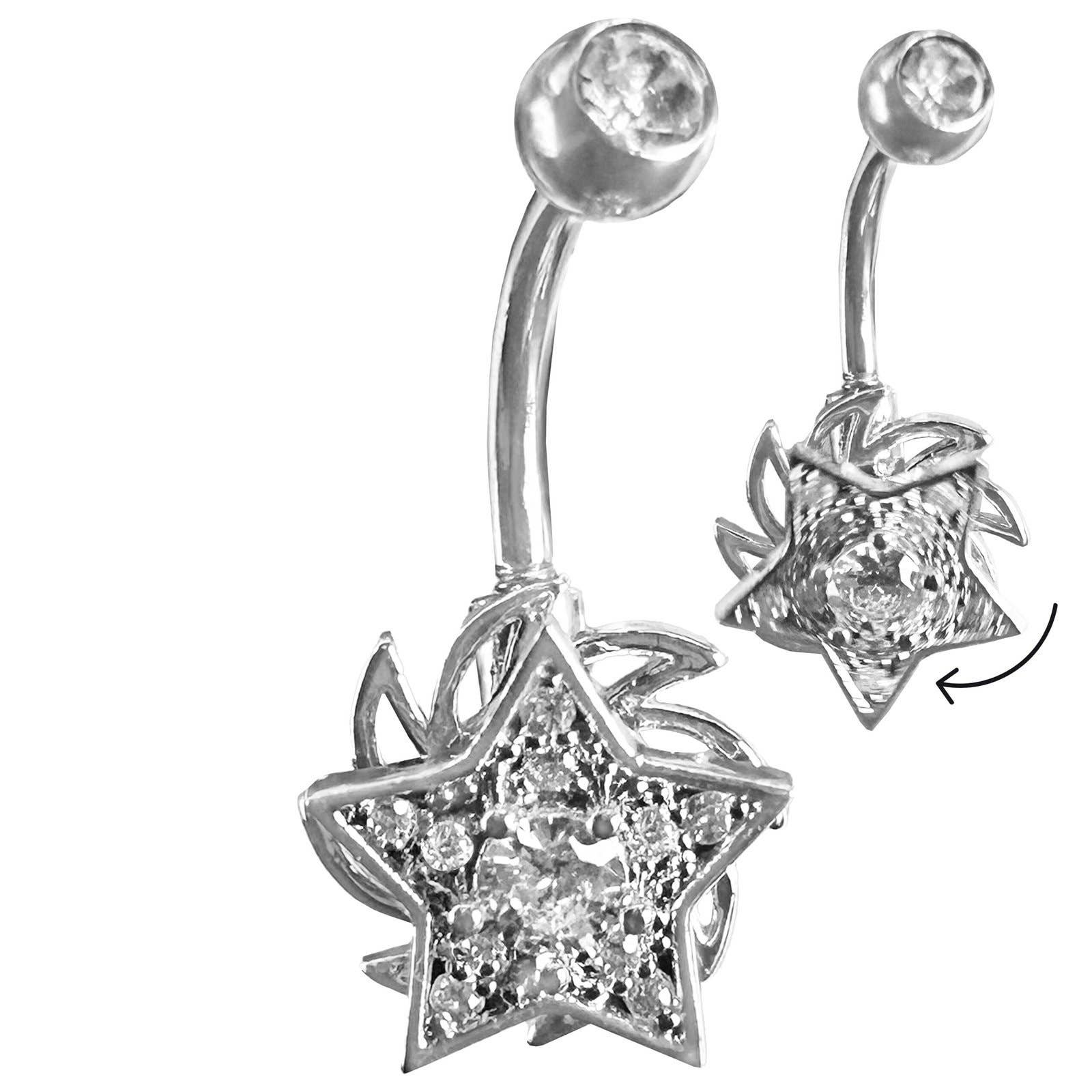 Testé pour la qualité par le Sheffield Assay Office en Angleterre. Barre de nombril Bodytrend avec anneau de nombril, ornée de cristaux CZ AAA+ à sertissage griffes. Partie supérieure à vis interne pour un ajustement sécurisé. Matériau : Acier chirurgical 316L Calibre : 14g (1,6 mm) Longueur : 10 mm Cristaux sertis à griffes Filetage interne