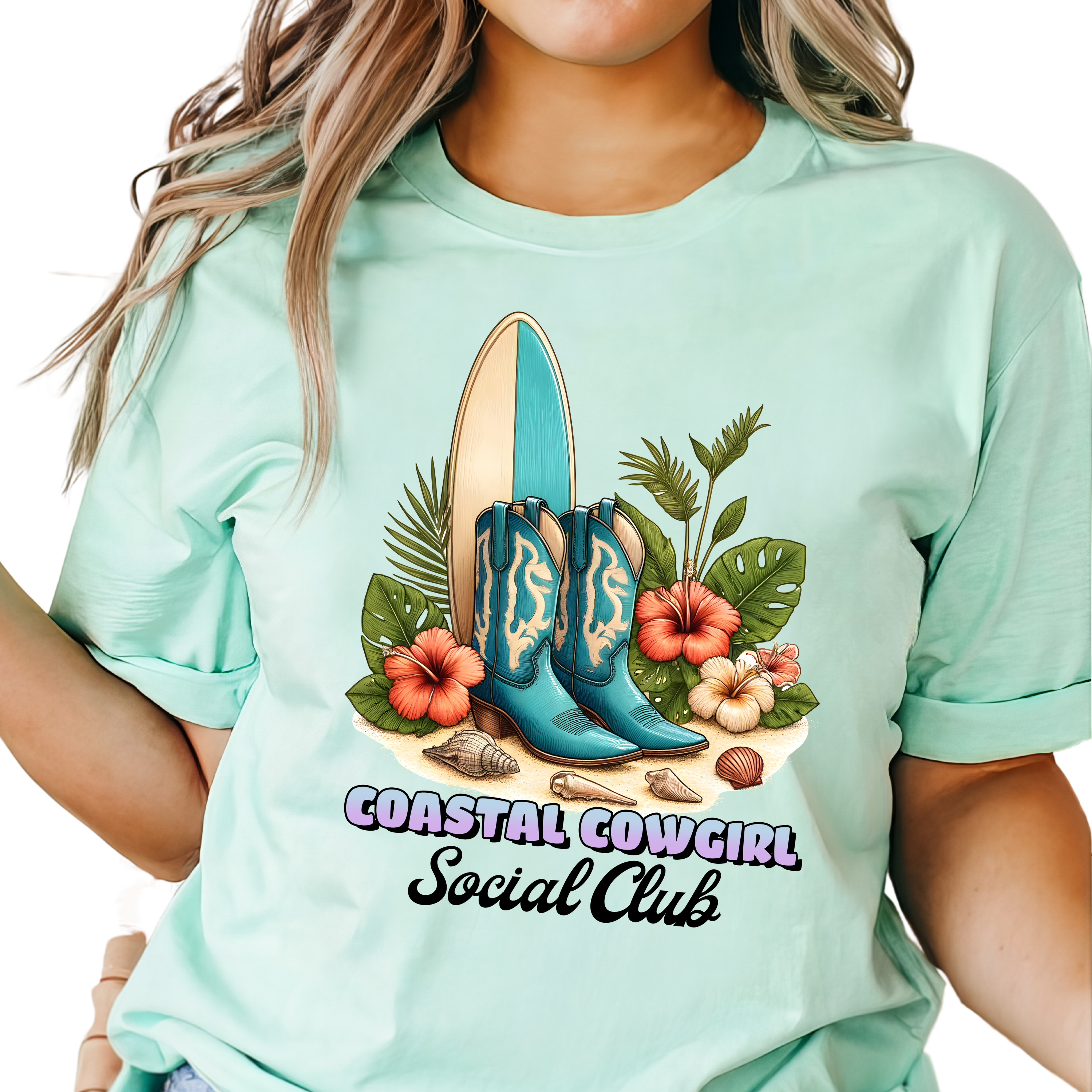 T-shirt graphique en mousse de mer du Coastal Cowgirl Surf Club en vente B2B