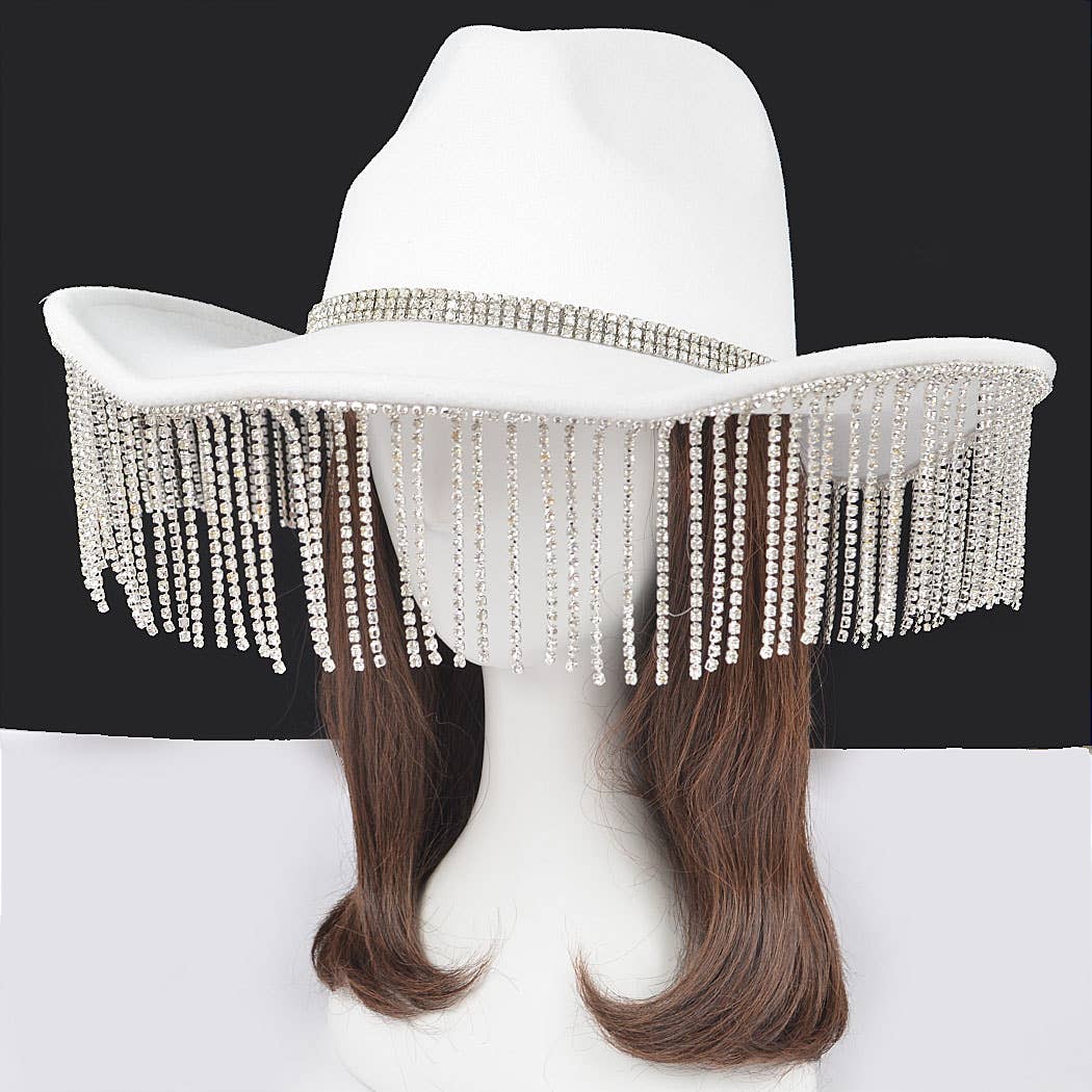 Ce chapeau de cowboy présente un style à franges en perles et strass à la mode. Découvrez un subtil mélange de modernité et de charme classique alors que ce chapeau de cowboy orne sans effort votre ensemble. 100% POLYESTER