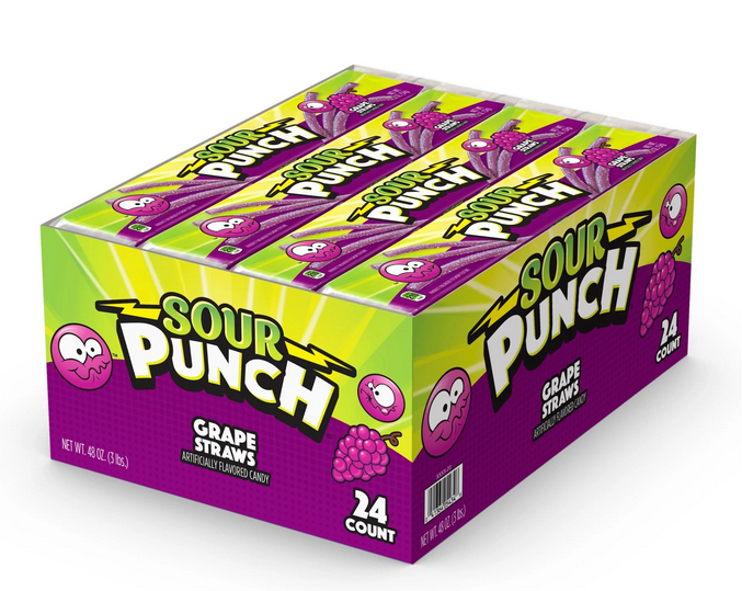Straws Sour Punch Straws, framboise bleue, 2 oz, étui 24 carats en vente B2B