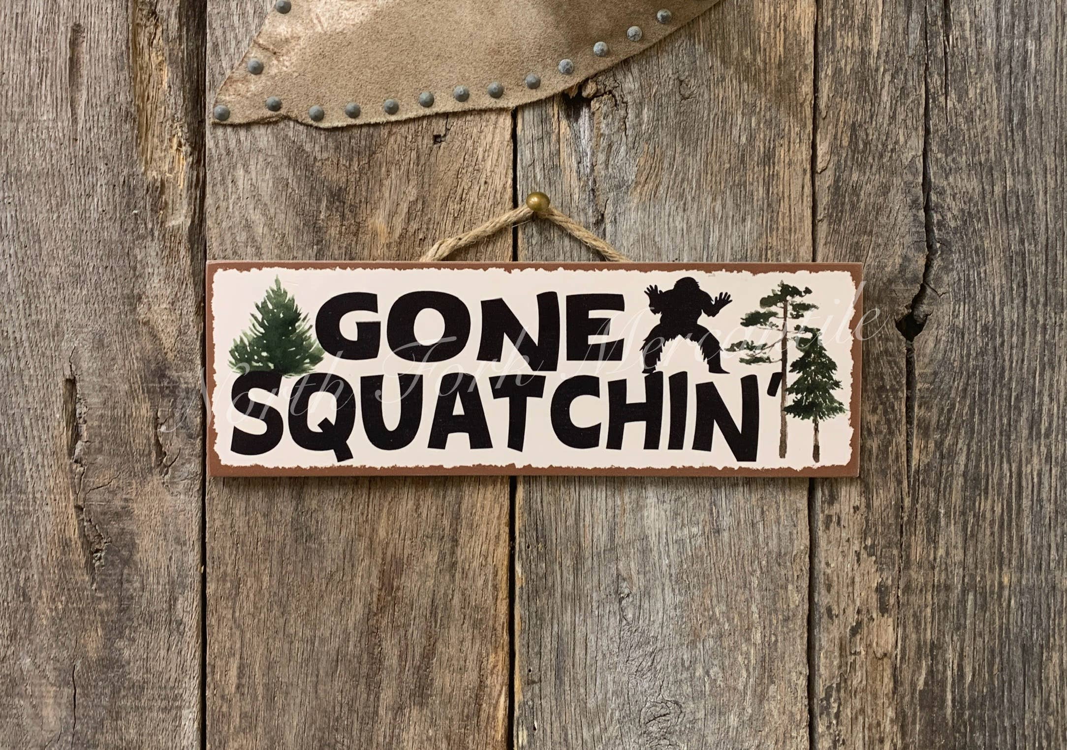 Plaque murale de la cabane mancave "Gone Squatchin" en vente B2B