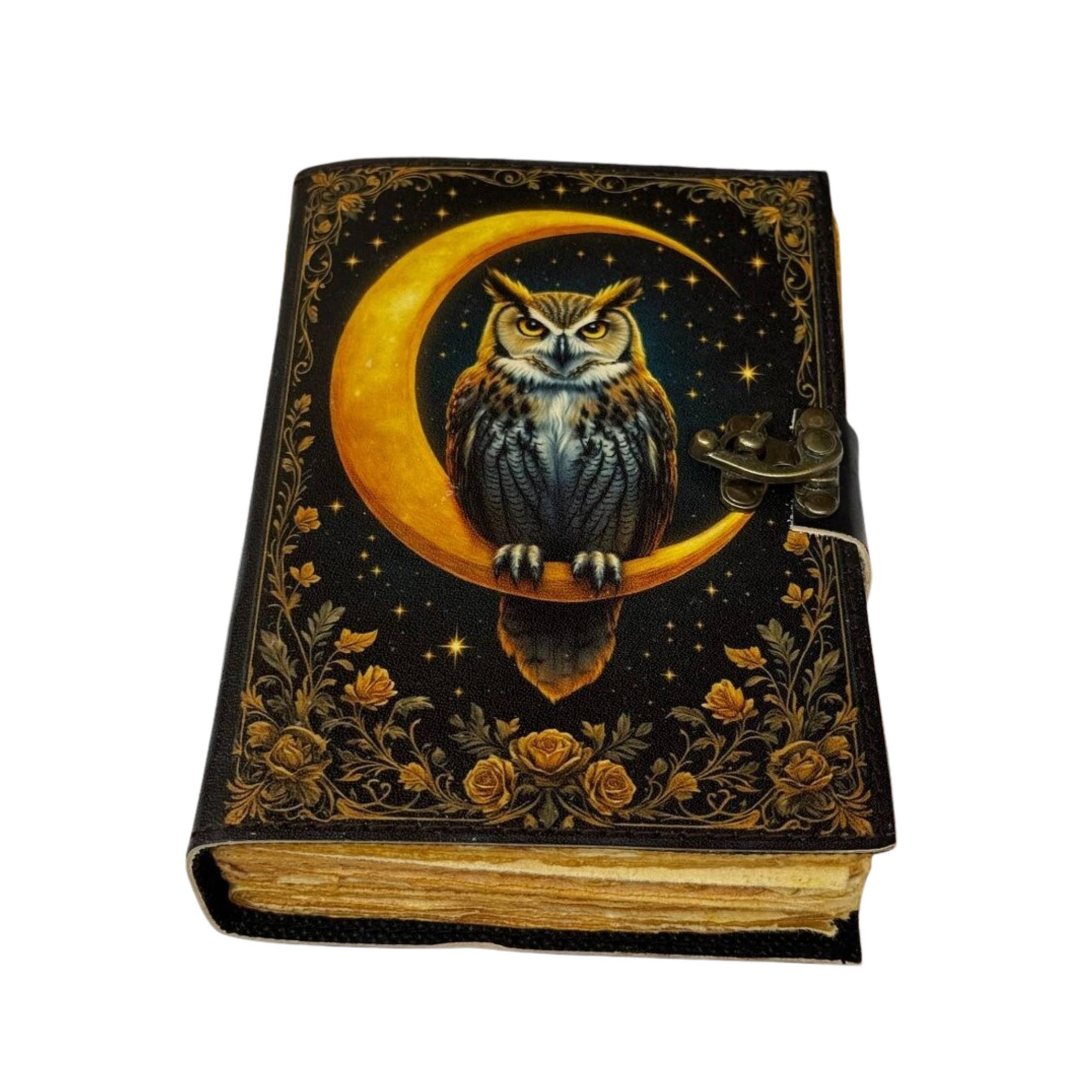 Un journal spécialement conçu pour les rêves, pensées et réflexions. La couverture avant de notre Journal de Nuit est richement illustrée de somptueux papillons de nuit voletant au clair de lune. La couverture arrière présente des libellules planant au-dessus d'un étang de nénuphars au crépuscule. Comme les livres du XIXe siècle, les couvertures intérieures avant et arrière sont marbrées. Une image semblable à une étiquette se trouve à l'intérieur de la couverture avant avec l'inscription "Pensées et Réflexions qui Voltigent la Nuit". Le journal est relié en spirale avec 50 pages lignées. Dimensions : 20,3 cm H x 14 cm L. (Environ A5) Découvrez son carnet sœur : le "Journal de Jour"
