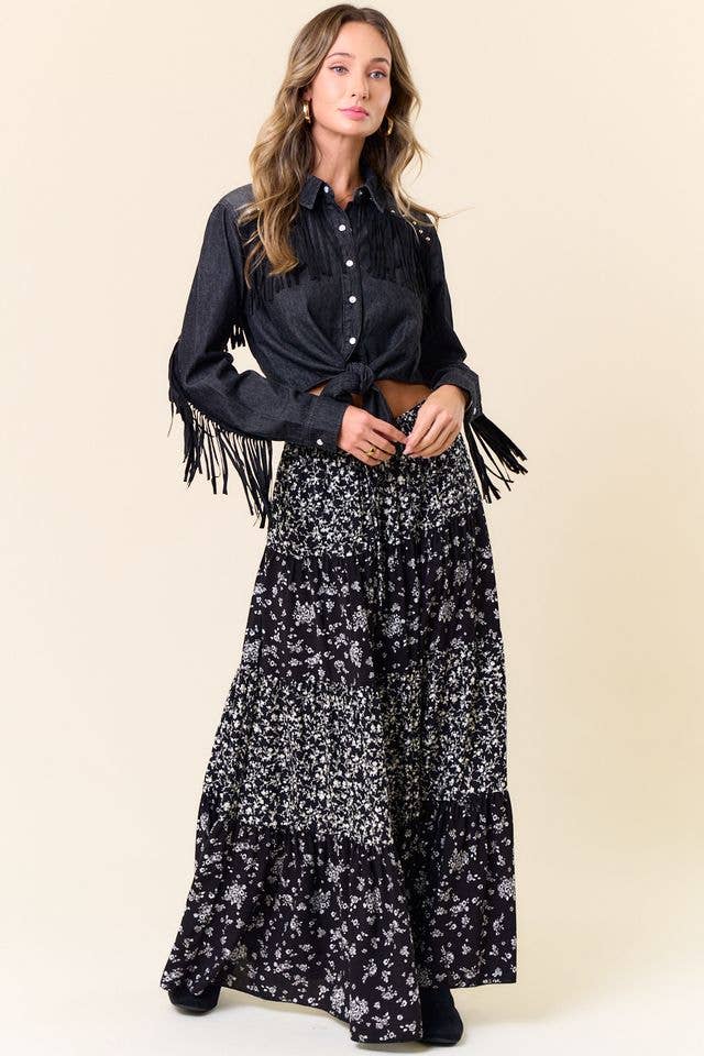 Adoptez une ambiance bohème avec notre jupe longue à franges tie-dye. Cette jupe élégante est ornée d'un motif tie-dye et de franges, ce qui en fait un ajout tendance et libre à votre garde-robe, parfaite pour les sorties décontractées et les festivals. Motif tie-dye : ajoute une touche de charme bohème et une touche artistique à votre tenue. Longueur maximale : une silhouette fluide et polyvalente adaptée à diverses occasions. Accents frangés : améliorez l'intérêt visuel et ajoutez de la texture pour un look bohème.