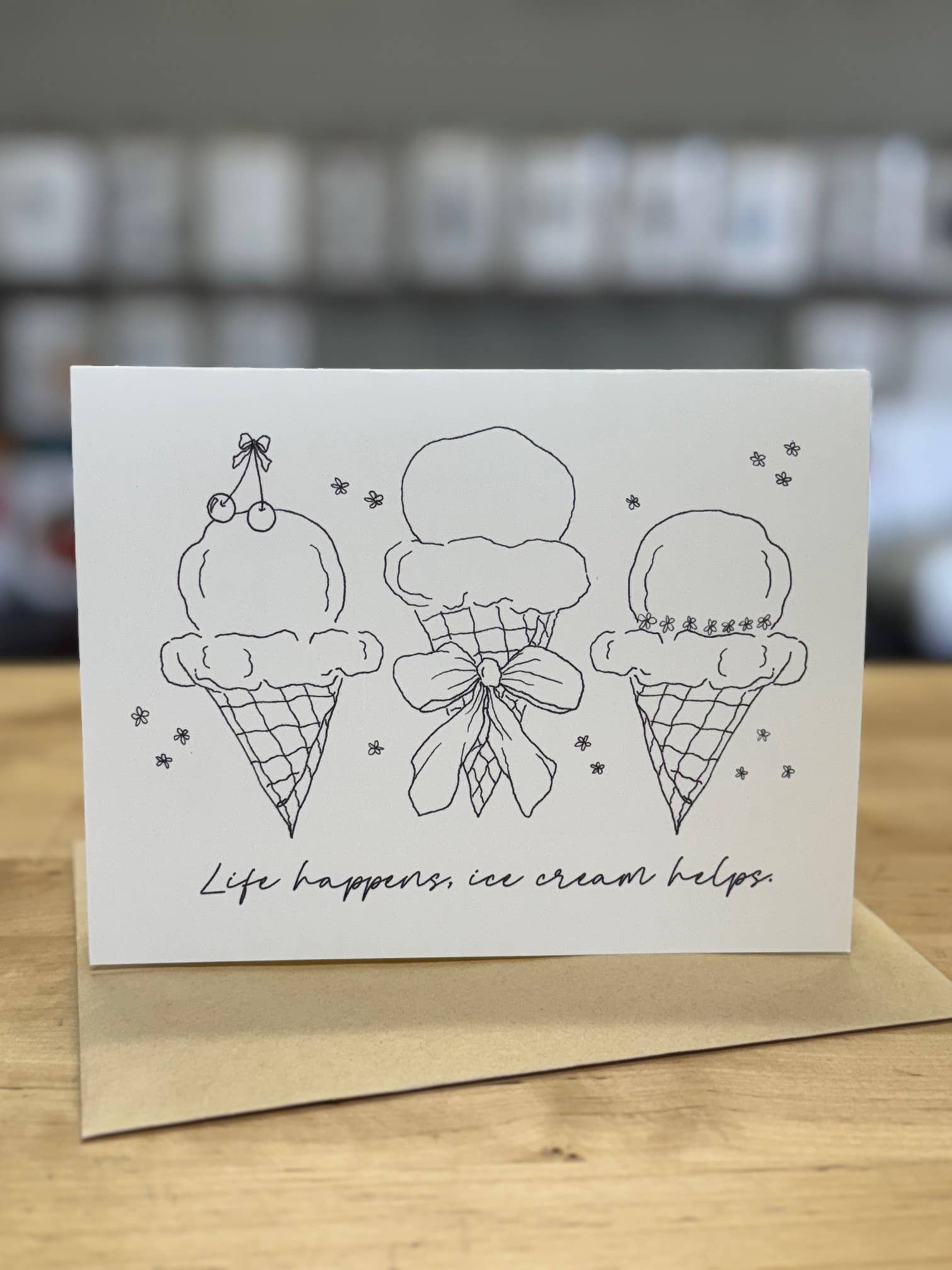 Cette carte est imprimée sur une carte ivoire avec une enveloppe marron kraft. Chaque dessin a été peint à la main ou conçu numériquement. Les cartes sont imprimées à la demande (production interne) et prêtes à être utilisées en quelques jours seulement.