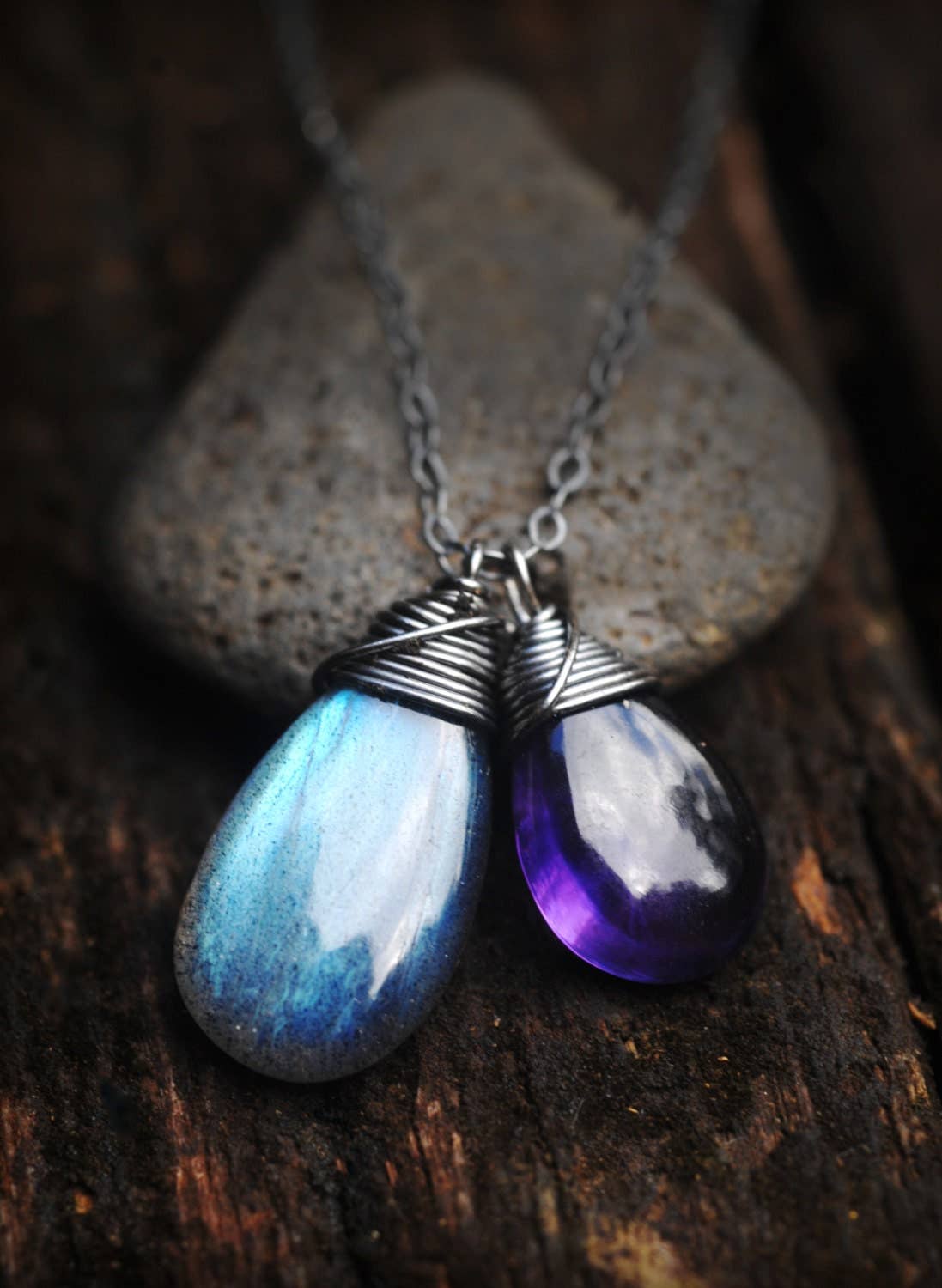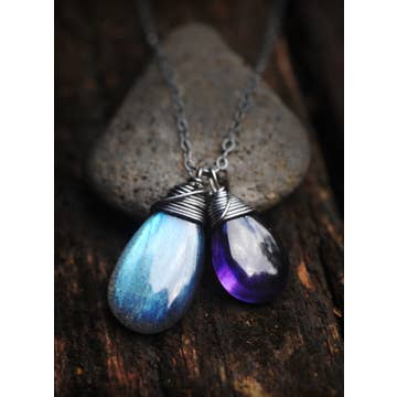 Pendentif Mini en Labradorite Enveloppé de Fil - Cordon de 21 Pouces en vente B2B