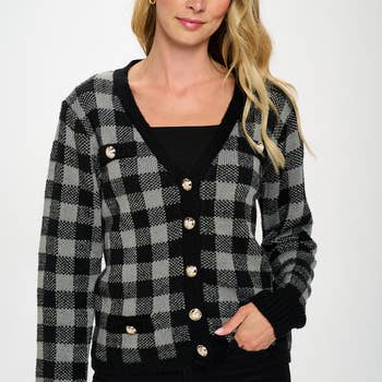 Veste cardigan chic à carreaux JK071 - Autumn Essential en vente B2B
