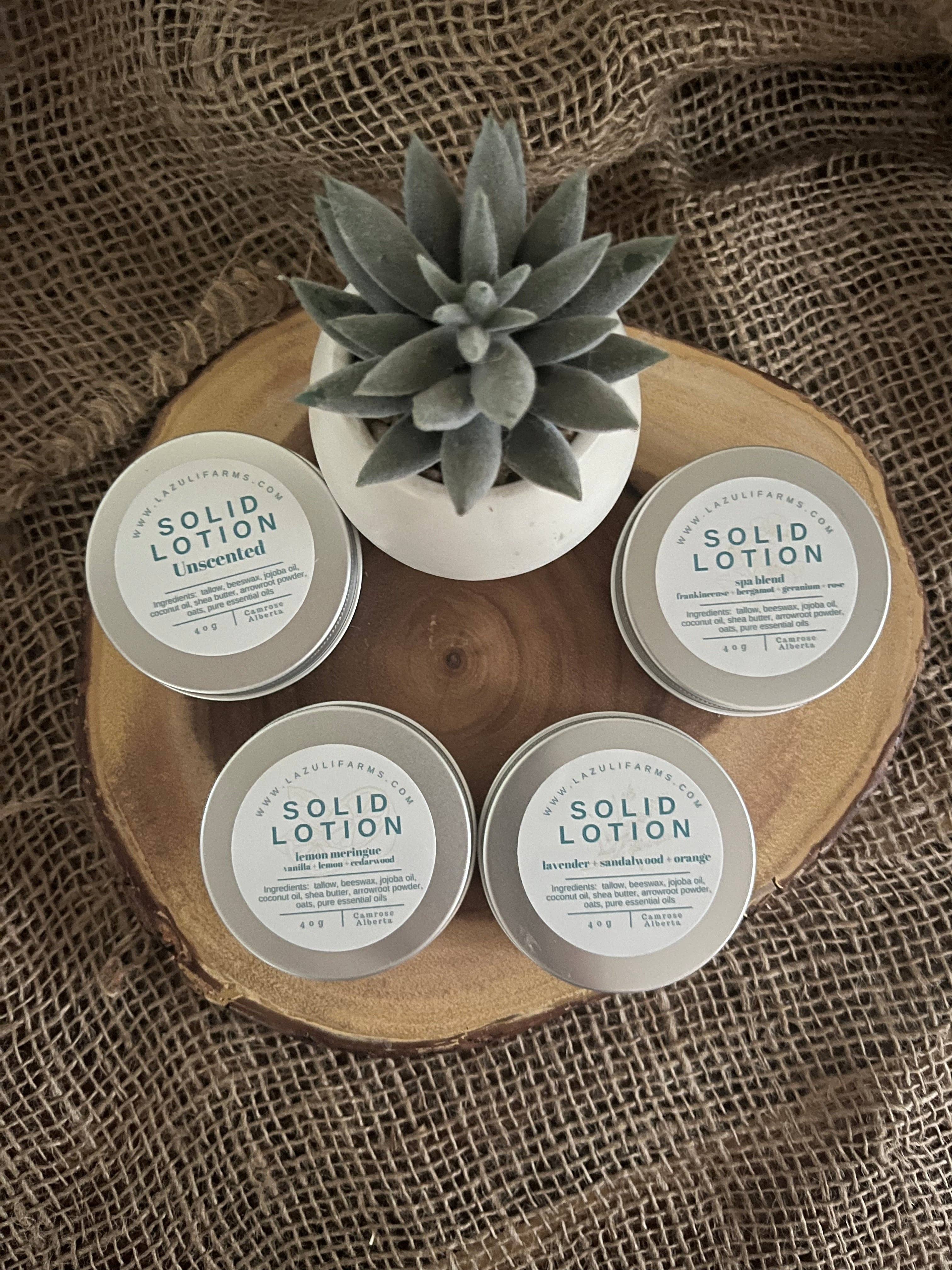 Profitez de nos barres de lotion faites à la main. Ce sont des blocs solides de lotion utilisés pour hydrater la peau. Fabriqués avec des ingrédients entièrement naturels. -Les barres de lotion sont solides à température ambiante mais fondent légèrement lorsqu'elles sont réchauffées par la chaleur de votre corps. -Vous pouvez frotter la barre de lotion sur votre peau ou la passer sous l'eau chaude pour l'adoucir. -Vous pouvez appliquer la barre de lotion sous la douche. -Ingrédients-Cire d'abeille, Huile d'olive, Beurre de karité, Beurre de mangue -Vient dans une boîte en métal -Conserver dans un endroit frais.