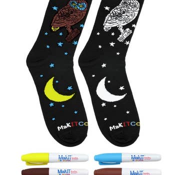 Chaussettes Day and Night Owls - Chaussettes pour enfants (3-7 ans) Hut ! Hut ! Chaussettes en forme de hibou de jour comme de nuit ! Dans la moitié supérieure, l'oiseau de jour vous regarde avec ses yeux brillants. Sur la moitié inférieure, un oiseau de nuit endormi prêt à aller se coucher. Design 3D sur son bec. * 85 % coton péruvien, 10 % nylon, 5 % élasthanne * Design qui attire l'attention - Couleurs captivantes. * Des chaussettes qui ne manqueront pas d'inspirer l'imagination ! Garçons et filles ! * Tissu de haute qualité qui ne se déchire pas et ne se déchire pas. Très confortable. * Il est préférable de le laver à l'eau froide. Avec votre achat, le Sock Panda fait don de chaussettes à une personne dans le besoin. Merci !